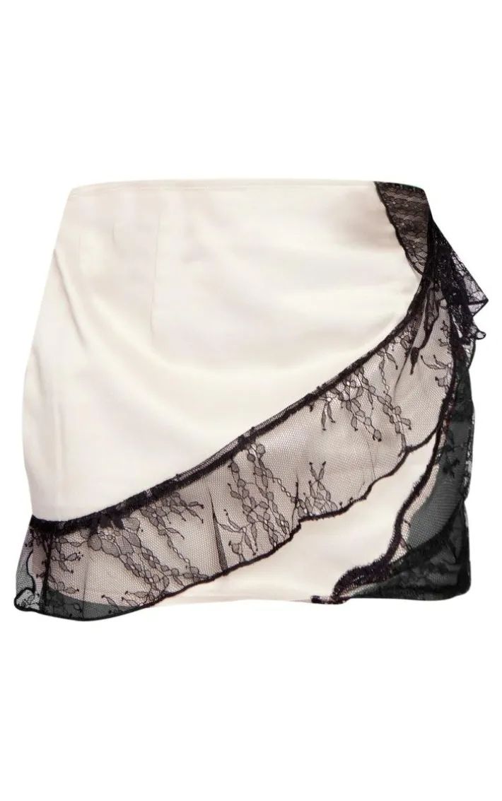 You’re sure to be the topic of everyone’s conversation with this stone satin lace trim wrap detail mini skirt. This mini skirt is brought to you in a stone satin material with a lace trip, a wrap front and a mini length, how could you turn this down? This mini skirt is everything and more we’re loving paired with the matching top, high heel and accessories for a look like no other.