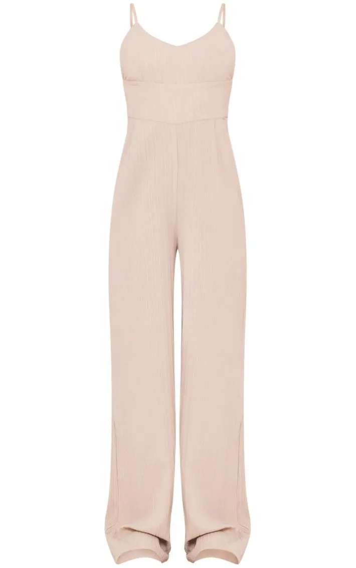 Be on trend this season with this stone strappy textured jumpsuit. Brought to you in a stone textured material with a strappy design and a wide leg fit, you will bring all the edge to your outfit of the day. This jumpsuit is perfect for those on the go days. Team with chunky sandals and accessories to be the center of attention wherever you step foot this season.