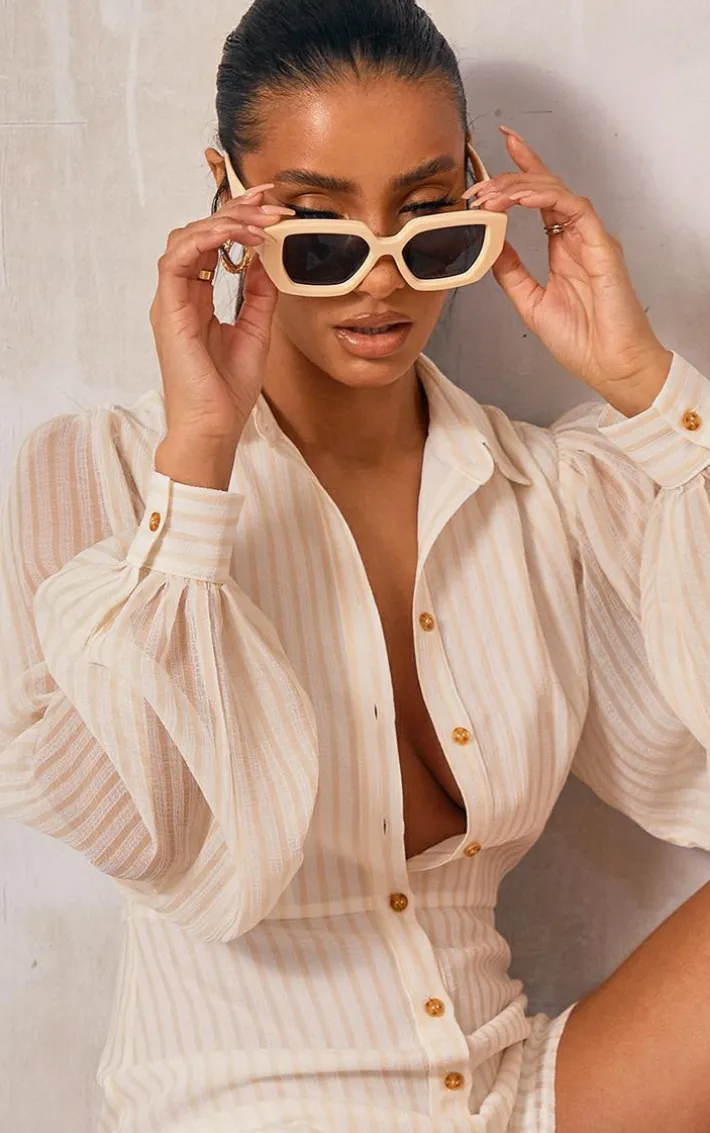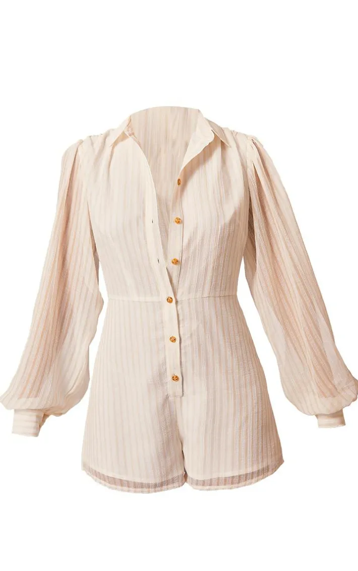 Look effortlessly chic from day to night with this romper. Featuring a stone material with striped detailing, balloon sleeve design and a collar neckline, we’re obsessed. Style this with sandals and chic sunnies for a summer-worthy combo.