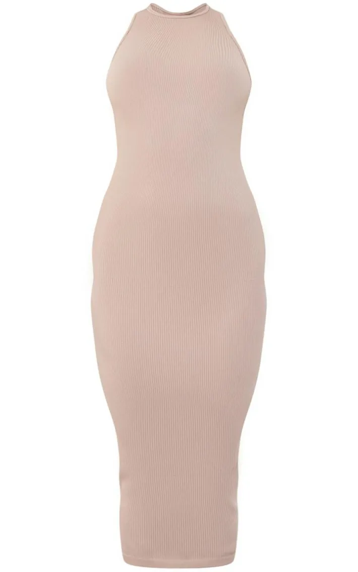 Add some neutral hues to your look with this midaxi dress. Featuring a stone ribbed material with a racer neck design and a midaxi length, we are obsessed. Team this with sandals and hoop earrings to complete the look.