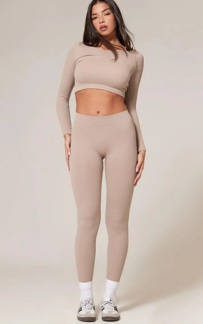 This stone structured snatched ribbed round neck long sleeve crop top is a must-have for your new season collection. Brought to you in a stone snatched ribbed material with a round neck design, long sleeves and a cropped length, what’s not to love? Team this with the matching leggings and chunky kicks for a chilled combo. It’s official, we’re obsessed.