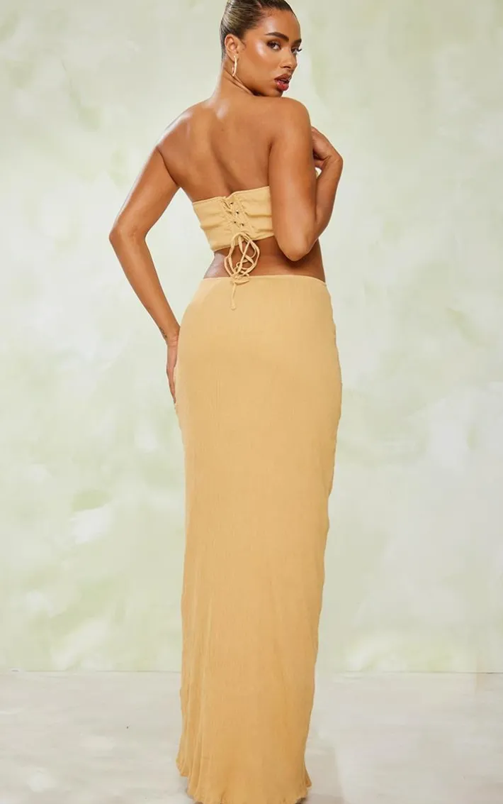 Channel all the chic vibes this weekend with this stone-textured corset cut-out lace-up maxi dress. Its stone textured material is super flattering and its cut-out design adds a glam touch to your look. This maxi dress also features lace-up detailing which is perfect for giving your look that extra edge. For that dreamy weekend-worthy finish, team with clear heels, gold accessories and a mini bag.