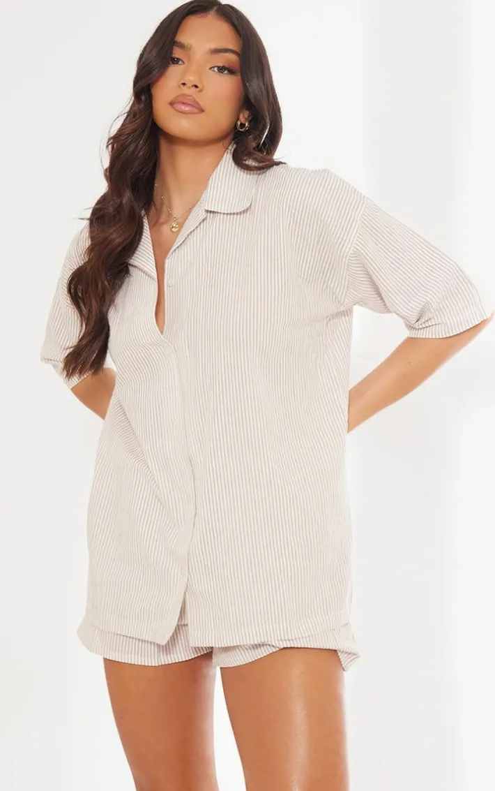 You are sure to earn some serious style points in these stone textured linen look striped floaty shorts. Brought to you in a stone hue textured linen look material with a striped design and a flattering floaty style, how can you resist? Pair these floaty shorts with the matching shirt, western-style boots and a hat for a look that is sure to make heads turn wherever you go.
