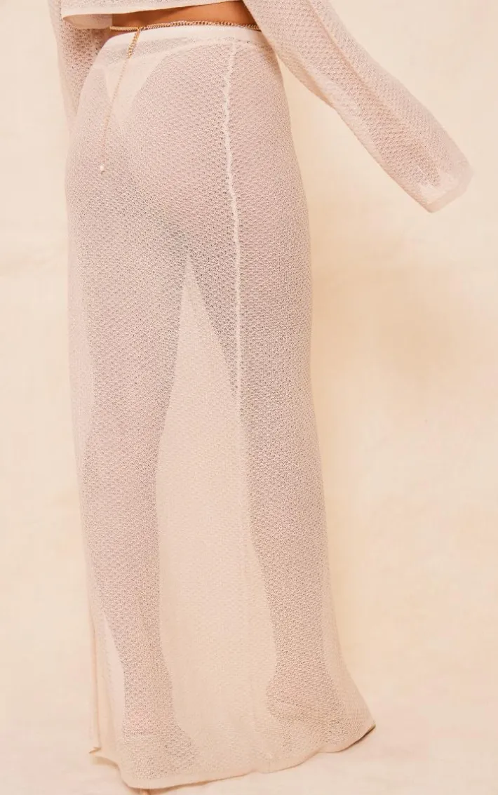 Bring all thew neutral hues to your new season wardrobe with this stone textured sheer knit ruched side maxi skirt. Made from a stone hue textured sheer knit material with a ruched side design and a flattering maxi fit, how can you resist? Style this maxi skirt with the matchig top, heels and gold accessories for a simple yet chic look we just can’t get enough of.