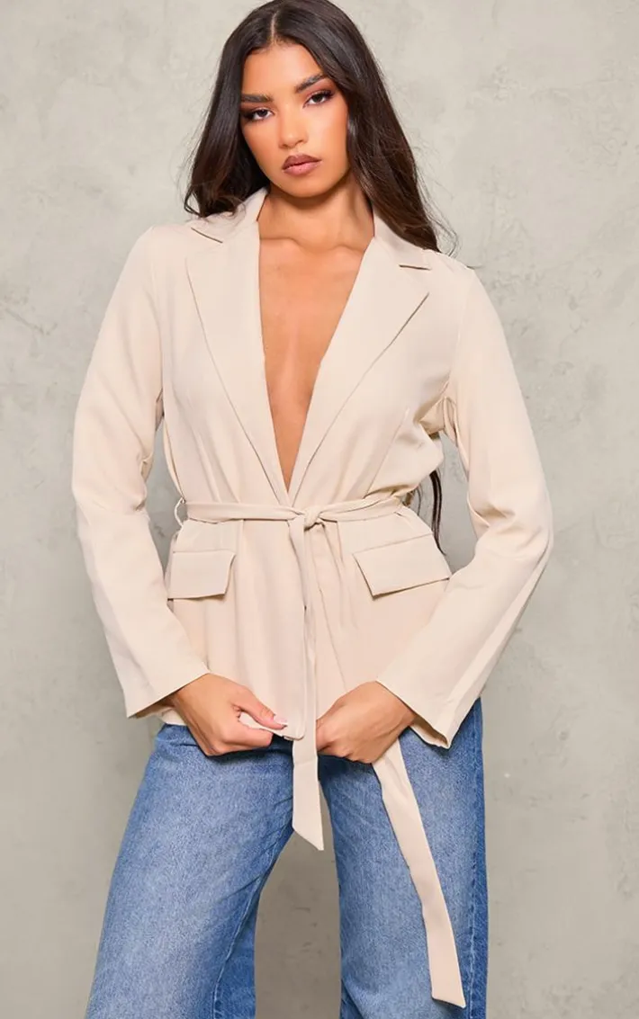 Go for all the effortlessly chic vibes with this stone tie up blazer. Brought to you in a stone material with a tie up fastening, this blazer is a dream. Style with jeans, a shoulder bag and fresh kicks for an elevate off-duty look everyone will love.