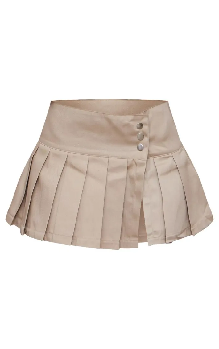 This stone twill button detail box pleated mini skater skirt is at the top of our wish list. Brought to you in a staple stone shade, with a twill material, box pleated design, skater style and button detail, you’ll look the best dressed at any occasion. Style with a stone jacket, knee length boots and basic white tee to elevate your style and steal all the stares.