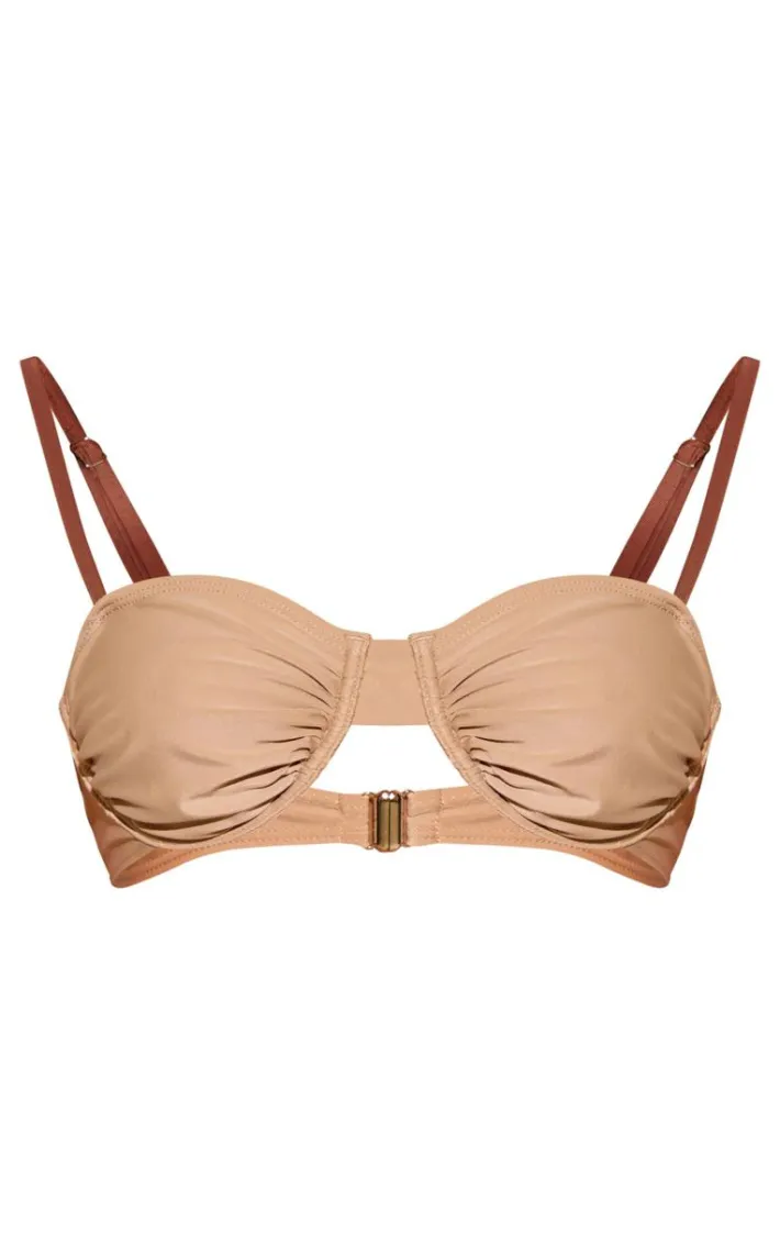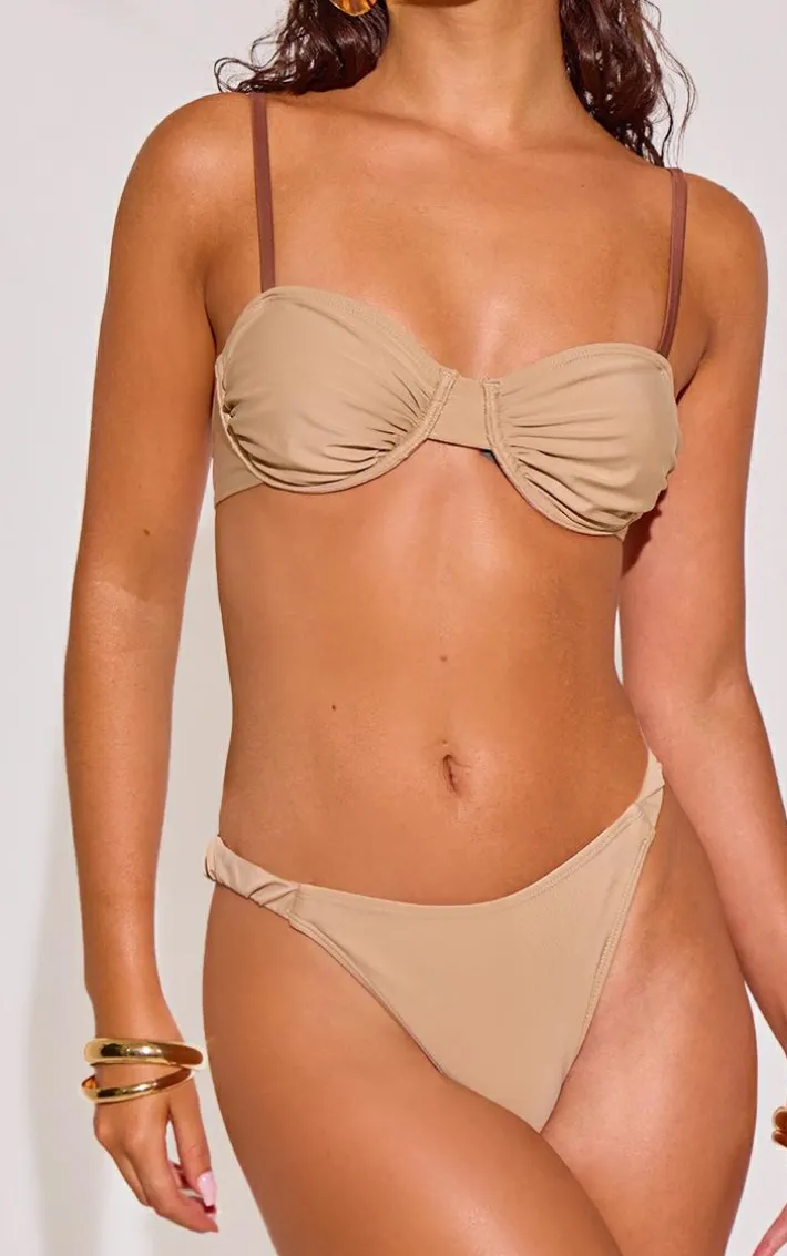 This stone underwired ruched bikini top is here to banish any of your what to wear dilemmas. Brought to you in a stone material with an underwired ruched design, we can’t get enough. This unreal bikini top will have you looking totally on-trend. Team with the matching bikini bottoms and your fave accessories for a next level look we just can’t get enough.