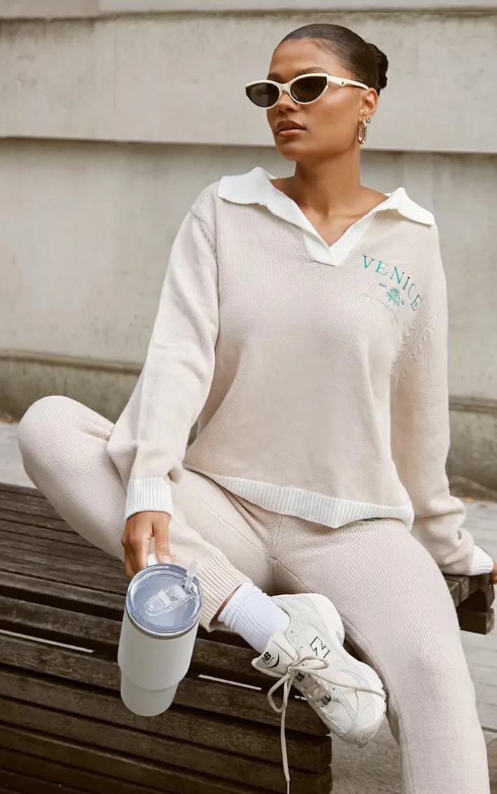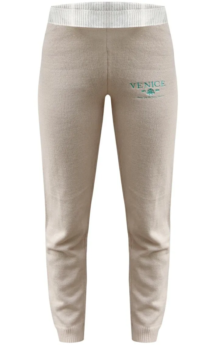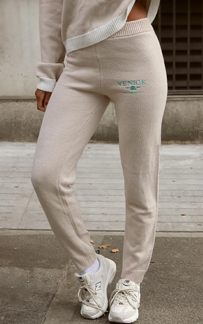 Switch up your everyday style game with these stone Venice embroidered knitted sweatpants. Brought to you in a stone hue knitted material with a ‘Venice’ embroidered design and a seriously comfy fit, what more could you want? Pair these knitted sweatpants effortlessly with the matching top, sneakers and your go-to accessories for an off-duty look you will be reaching for again and again.