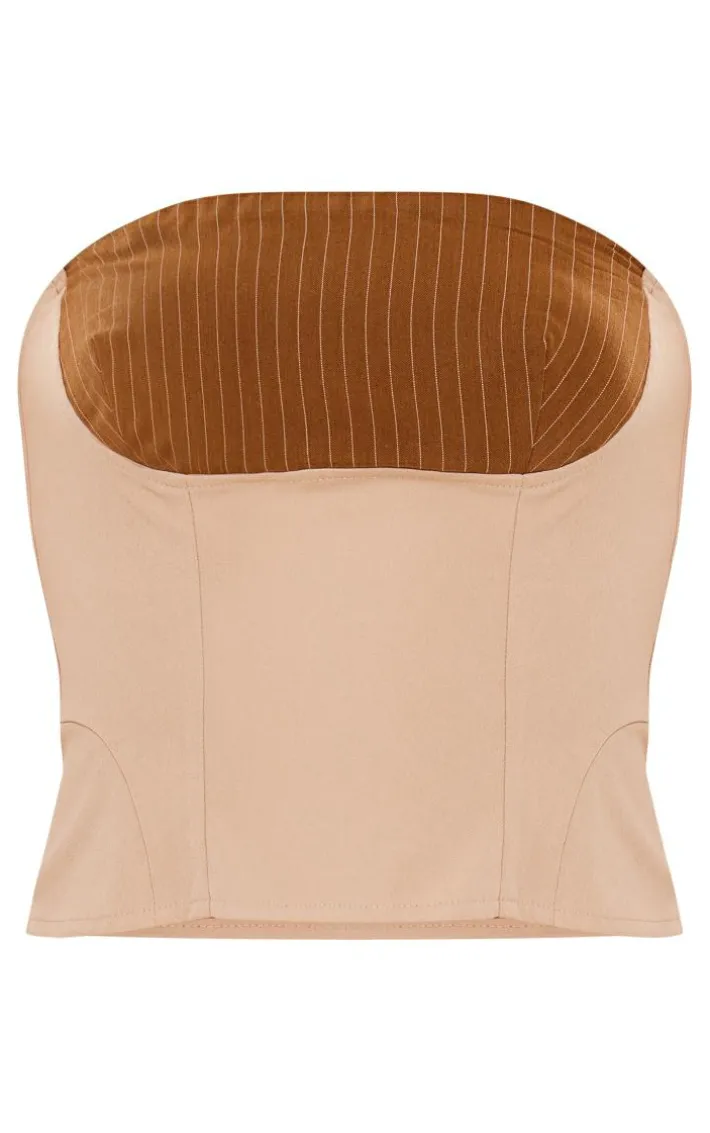 We are all about the pinstripe trend this season so get your weekend look on point with this stone woven pinstripe bust crop top. Brought to you in a stone hue woven material with a pinstripe bust design, a bandeau neckline and a cropped fit, we are obsessed. Style this crop top with wide leg pants, heels and gold accessories for a look that will make heads turn.