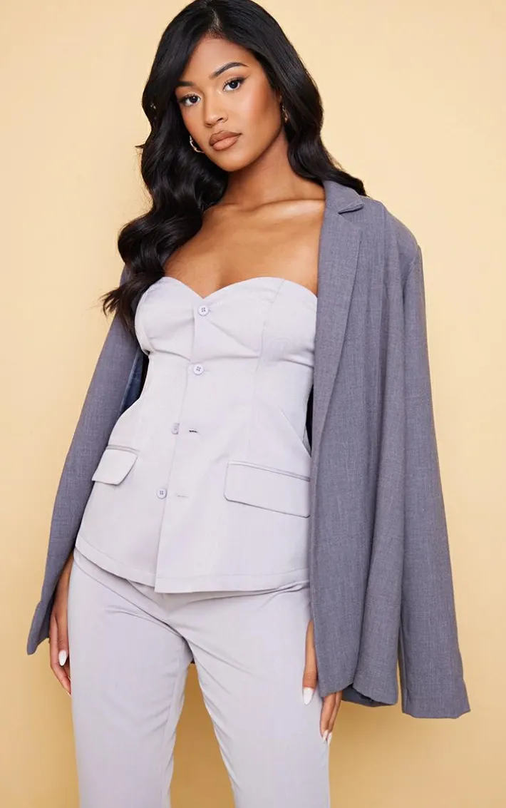 Your weekend look is in need of a subtle touch of chic and we’ve got you covered with this tall ash grey button front corset top. Made from an ash grey hue material and featuring a button up front design, what more could you ask for? In a figure-flattering corset fit, this tall top is sure to have you looking and feeling confident all night long. We are loving this styled with the matching pants, clear strap heels and statement accessories for an effortless weekend-worthy ‘fit.