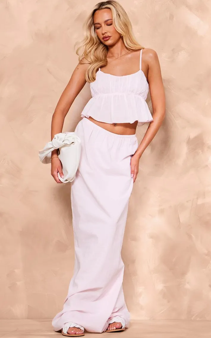 Take on your weekend the right way with this tall baby pink shirred linen look crop top. Made from a baby pink linen look material with a shirred design, this is everything were loving and more. With its cropped length and figure-hugging fit, this tall crop top is sure to hug you in all the right places. To complete the look style this seamlessly with your fave skirt and accessories for a look that will secure you all the likes.