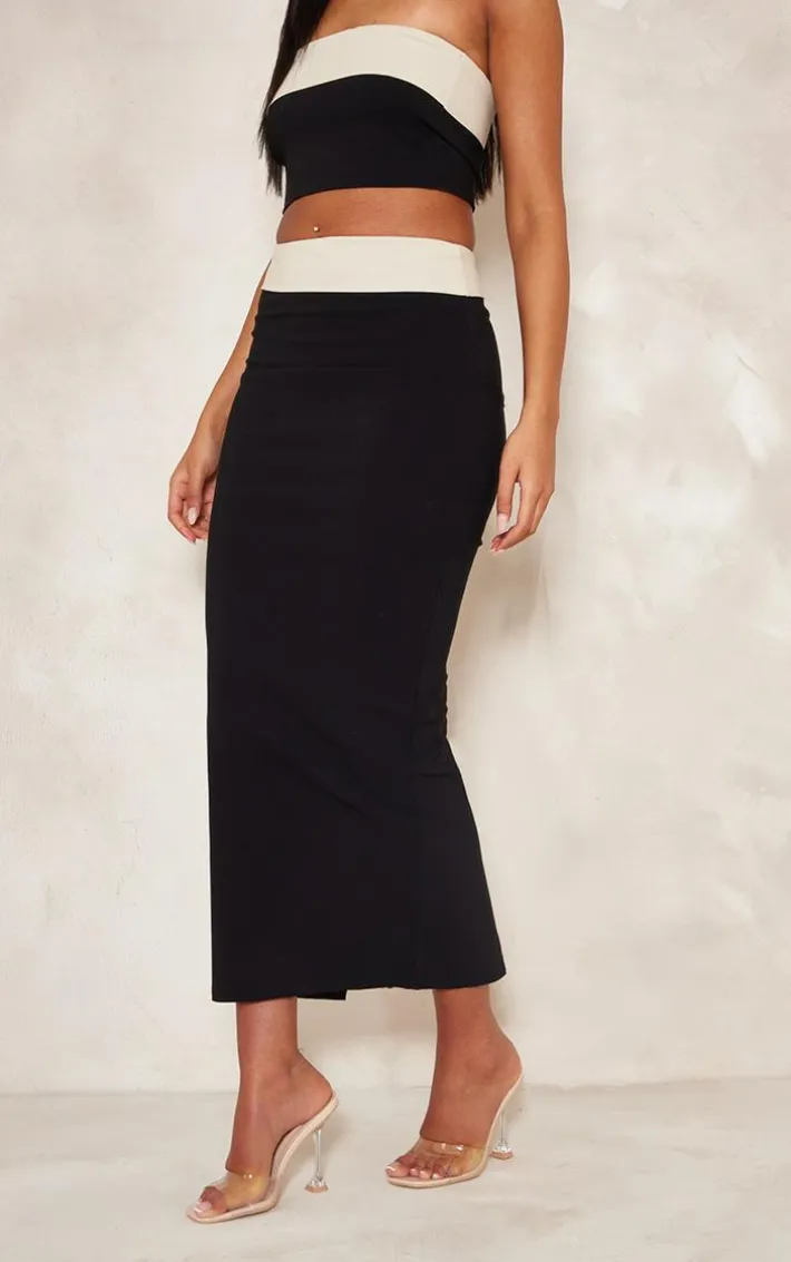 Level up your weekend wardrobe with this tall black contrast fold over midaxi skirt. Brought to you in a black material with a contrasting fold over design and a midaxi length, how could you resist? To complete this dreamy look simply style with the matching bandeau top, high heels and accessories for an insta-worthy combo.