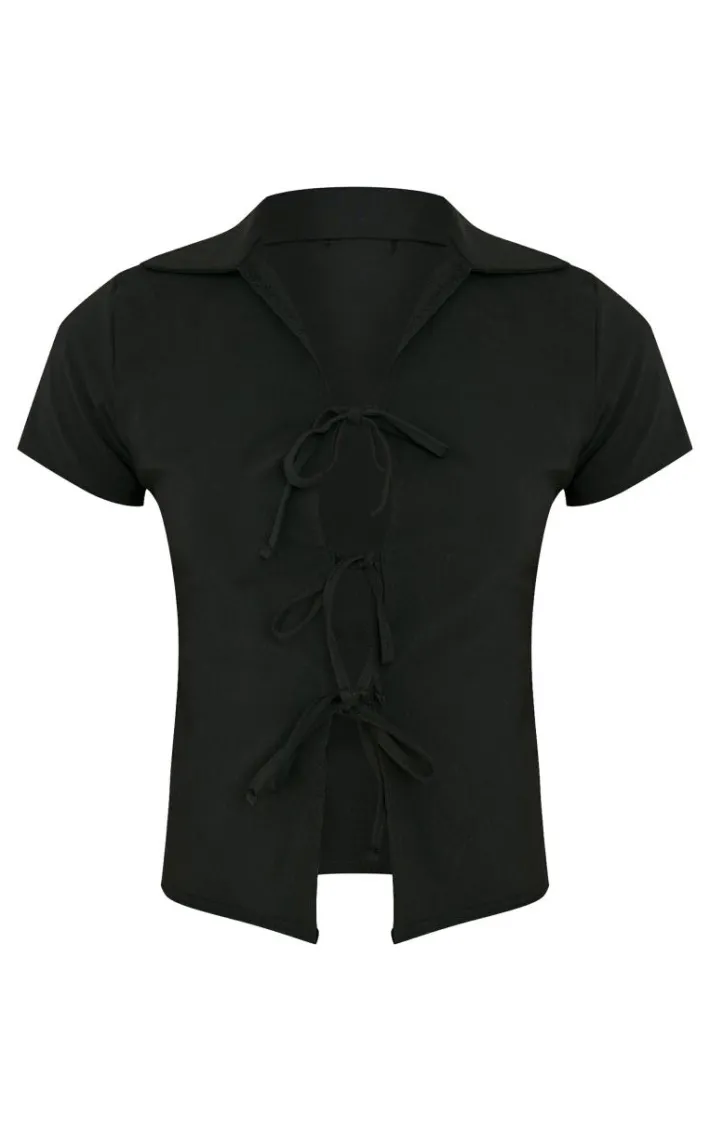 This tall black stretch woven tie front top is a must-have in your collection. Brought to you in a black stretch material with a woven design and a tie front, giving you a flattering fit that will have you feeling confident. Team this tall top with a mini skirt and some statement accessories for a fool proof finish.