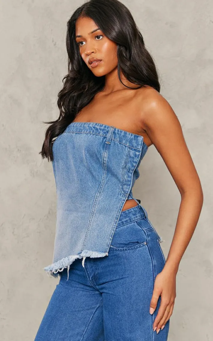 Amp up your denim look with this tall blue bandeau ombre denim asymmetric hem top. Brought to you in a blue denim material with an ombre design, a bandeau neckline and an asymmetric hemline, how can you resist? Nail the double denim trend by styling this bandeau top with jeans and flatform sandals for a look that is sure to make heads turn.