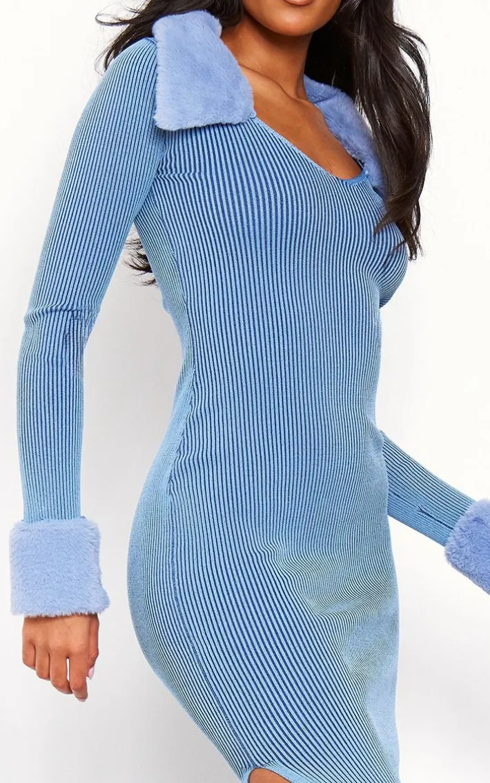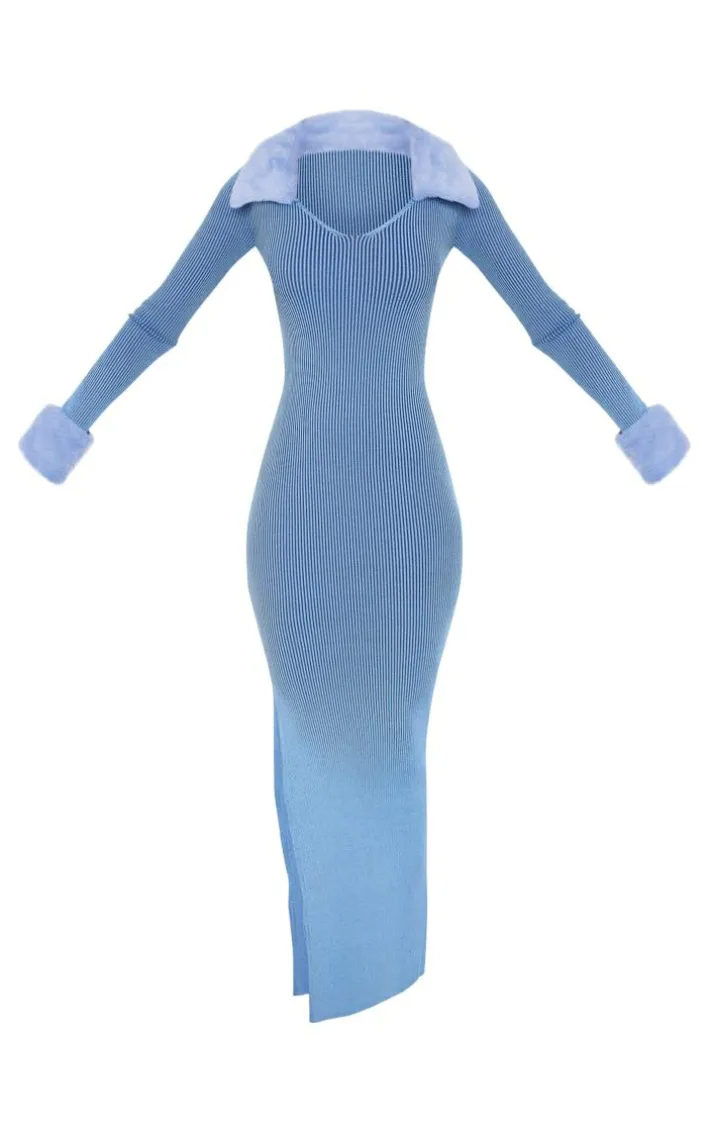 Enter the new season in style with this tall blue faux fur collar knitted maxi dress. Brought to you in a blue hue knitted material with a faux fur collar that we just can’t get enough of right now, long sleeves and a maxi length, how can you resist? Style this tall dress with heels and gold accessories for a look worthy of your weekend plans, or why not add chunky boots for more of an everyday vibe?