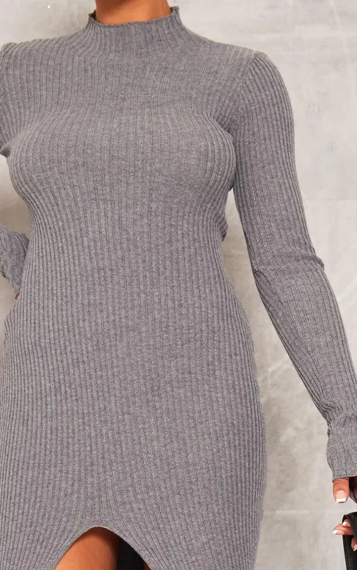 Meet your new season wardrobe essential with this tall charcoal knitted ribbed side split maxi dress, it’s a definite yes from us. With a charcoal hue knitted ribbed material, a side split design and a maxi length, this tall dress is here to solve all your styling dilemmas. Pair it with slip-on heels and a shoulder bag for a flawless finish.