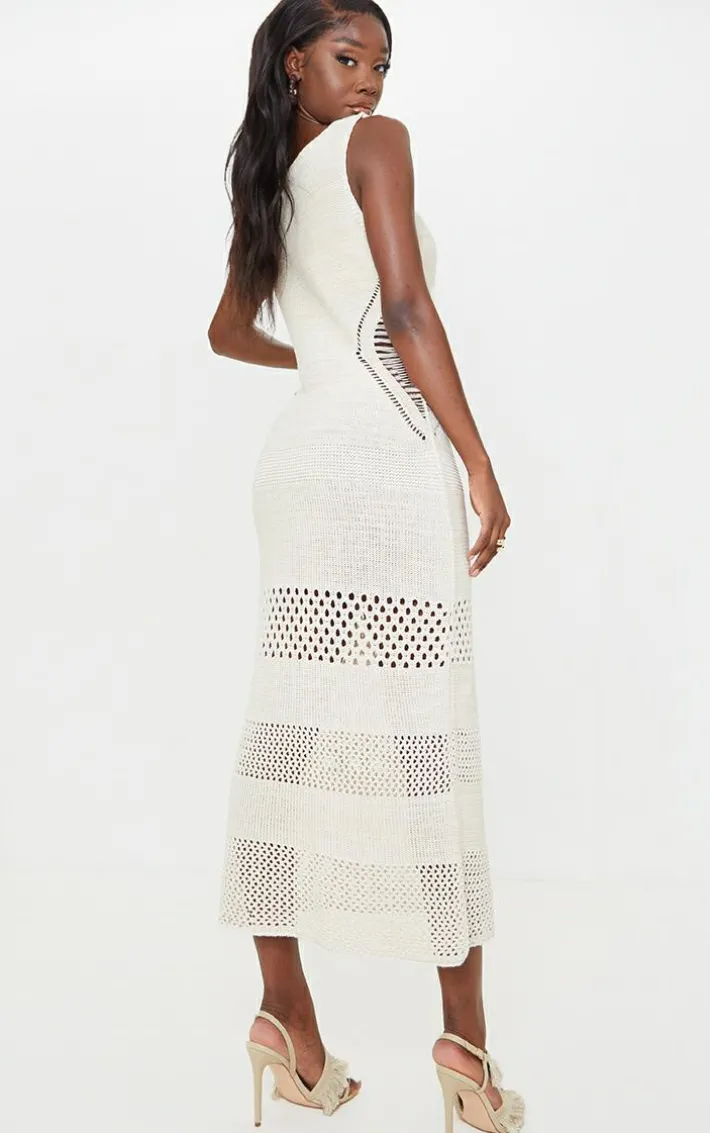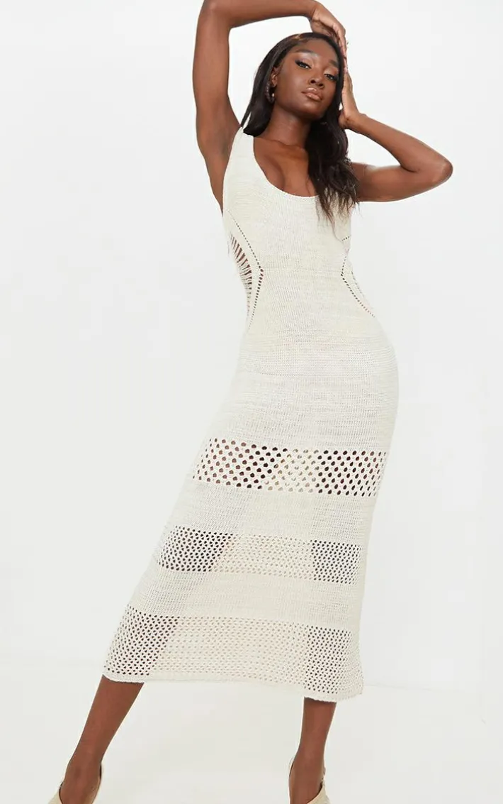 Add this dress to your S/S wardrobe. Featuring a cream material with crochet detailing, a plunging neckline and maxi length, we’re obsessed. Wear with heeled mules and gold accessories to complete the look.