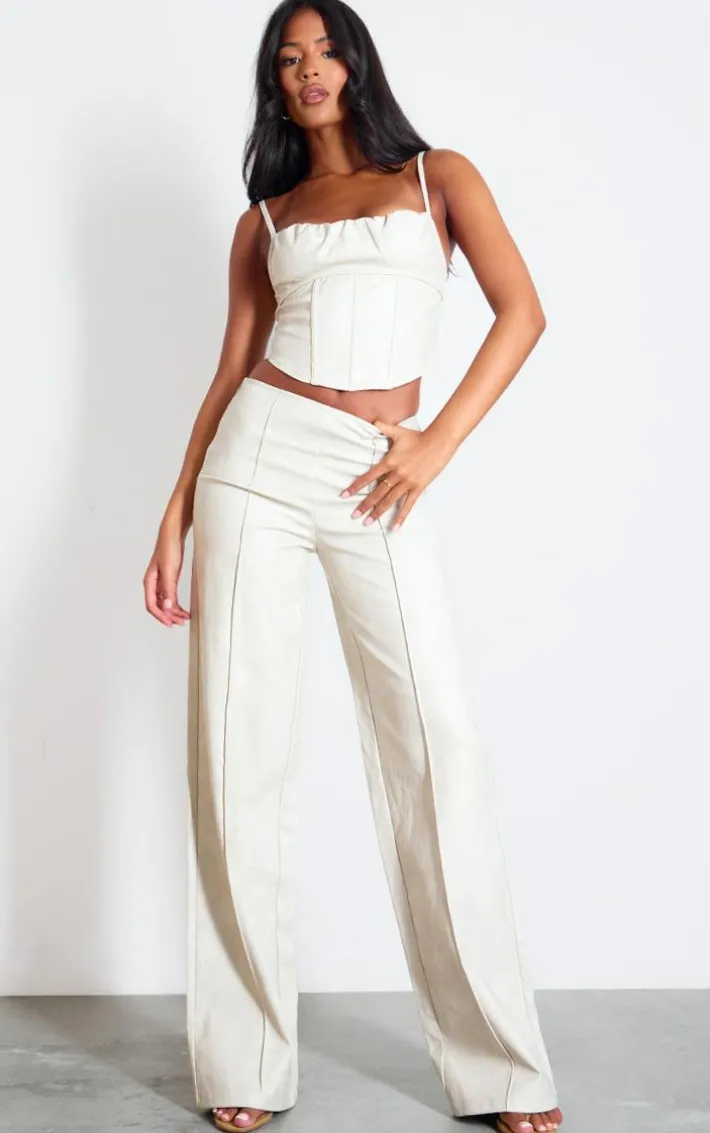 Amp up your style game this season with this tall cream faux leather boned corset. Brought to you in a cream hue faux leather material with a boned detail, this corset is at the top of our wish list. Style with the matching pants, your fave heels and gold accessories for a look like no other. It’s official, we’re obsessed.