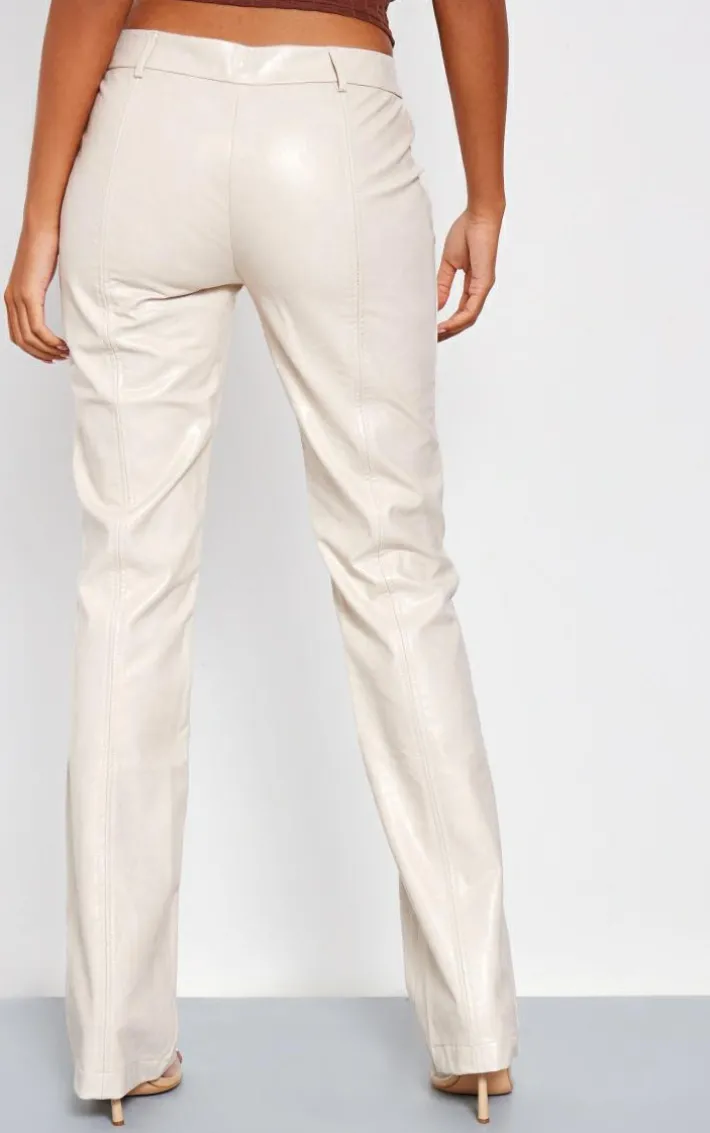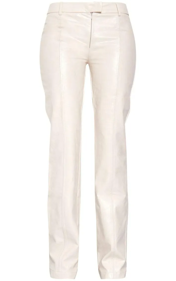 Get ready to look all kinds of chic in these tall cream faux leather low rise textured straight leg pants. Brought to you in a cream hue faux leather textured material with a low rise design and a straight leg fit, you really can’t go wrong. Style these faux leather pants with a crop top and heels for a simple yet chic look they won’t be able to take their eyes off.