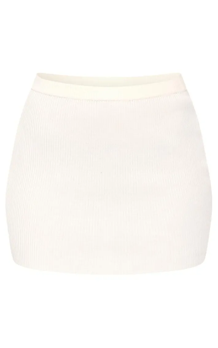 Look all kinds of chic in this tall cream rib detail knit mini skirt. Brought to you in a cream hue rib knit material with a flattering mini fit, what more could you need? We are loving this mini skirt paired with the matching top, knee length heeled boots and a faux leather coat for a look that is sure to have your earning some serious style points.