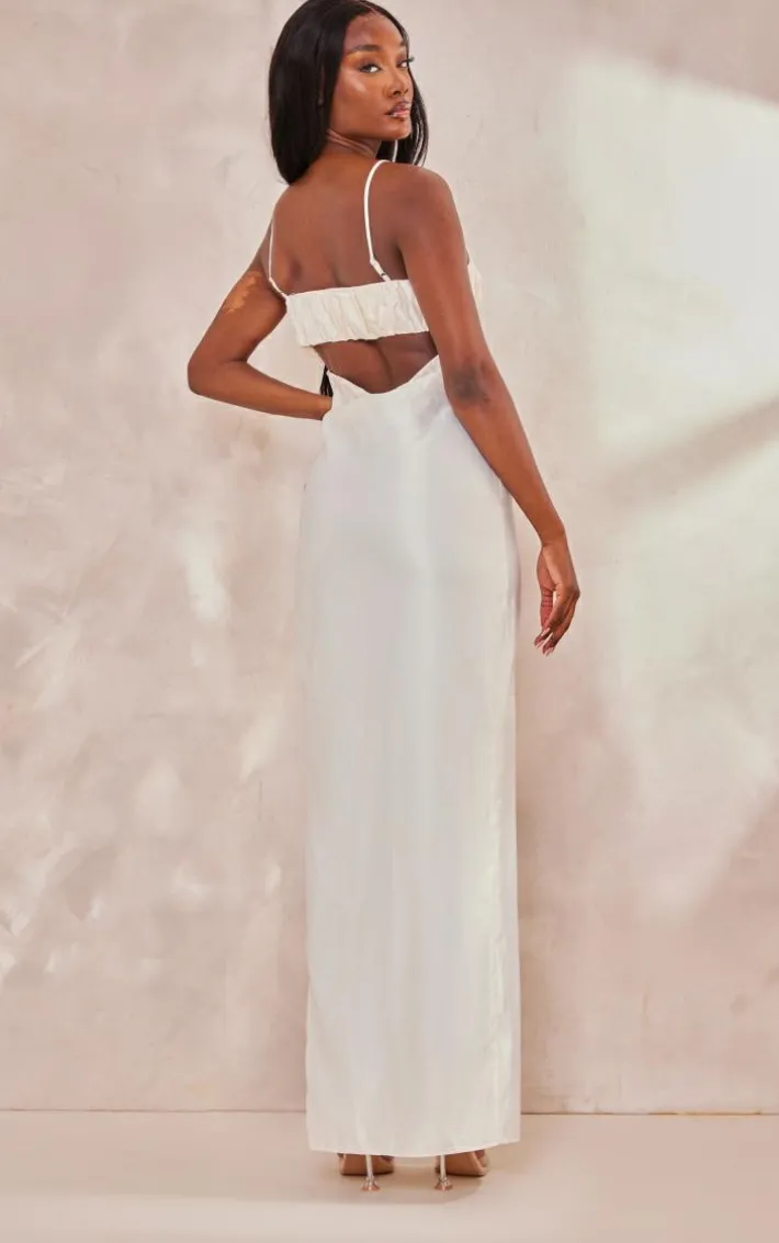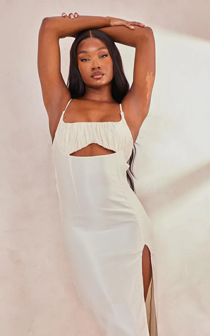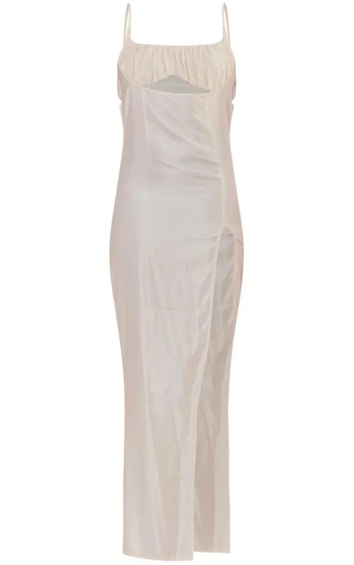Get ready to look all kinds of glam in this tall cream ruched front satin midaxi dress, it is sure to be the answer to all your ‘what to wear’ dilemmas for your weekend plans and beyond. This dress features a cream satin material with a ruched front design and a midaxi length, how could you say no? Pair this tall midaxi dress with clear slip-on heels and your fave accessories for a look that everyone will remember.