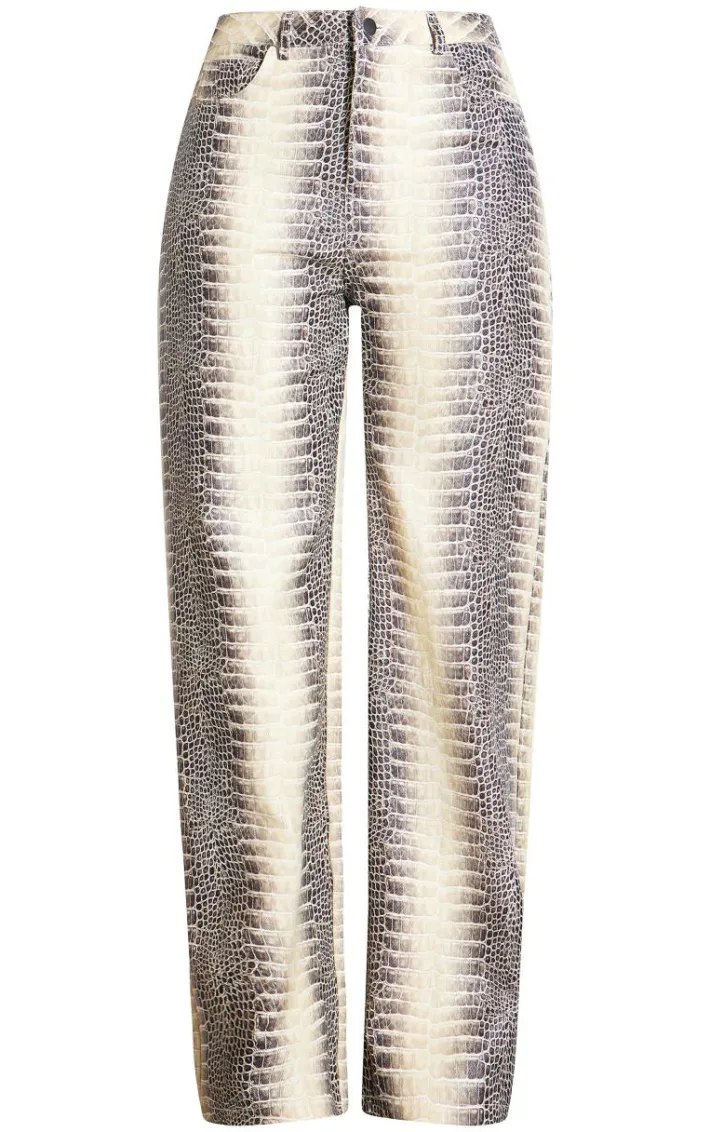 Inject some fierce animal prints into your new season wardrobe with these tall cream snake print high waist wide leg jeans. Brought to you in a cream hue material with a snake print design, a high waist and a wide leg fit, what more could you want? Style these wide leg jeans with a long sleeve top and heels for a look worthy of your weekend plans.