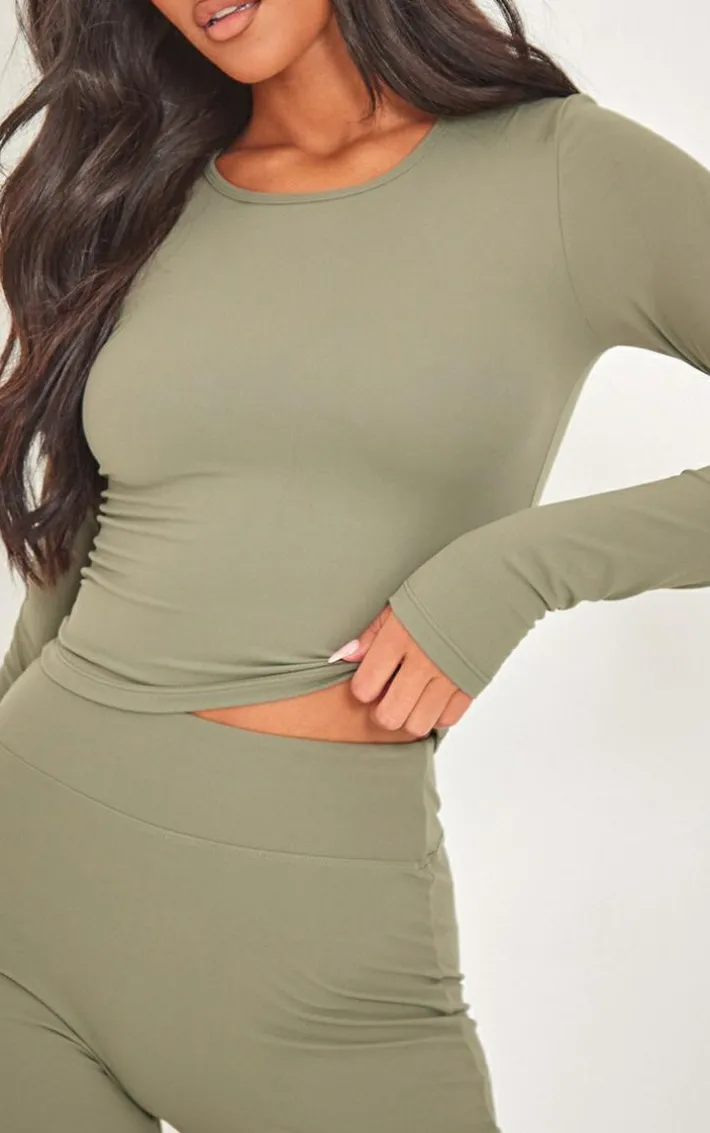 Add some of this season’s must-have hue to your wardrobe with this tall dark olive snatched sculpt long sleeve top. It features a dark olive material with a contour sculpting design that will show off your unreal shape and long sleeves, meet your new go to base layer doll. Team this tall top with the matching bottoms, chunky sneakers and your fave accessories to nail that ‘clean girl’ vibe.