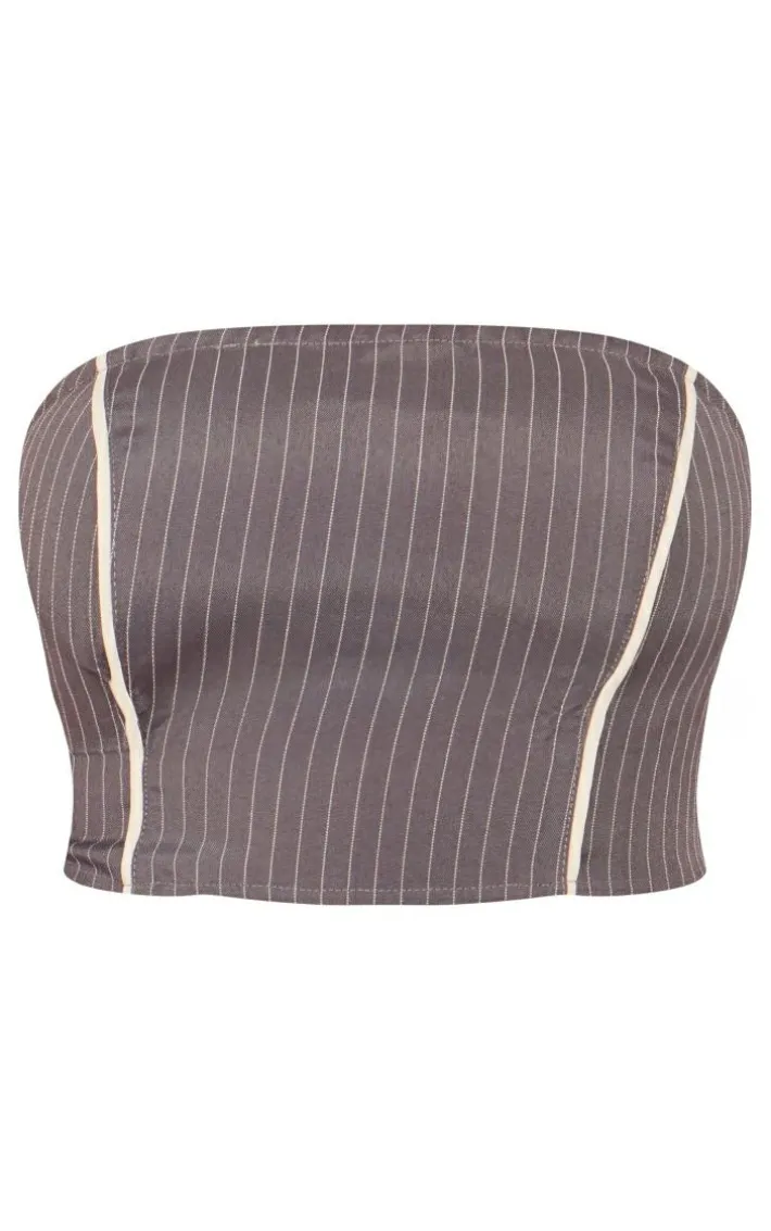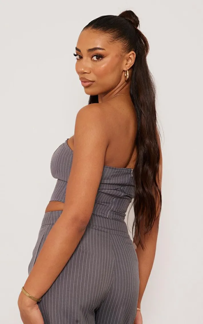 Make room in your new season wardrobe for this unreal tall grey pinstripe bandeau zip up top, we’re seriously obsessed. This tall top is made using a grey pinstripe material with a zip up design and a bandeau style, what’s not to love? Style with the matching pants, clear heels and a clutch bag for dreamy date night look.