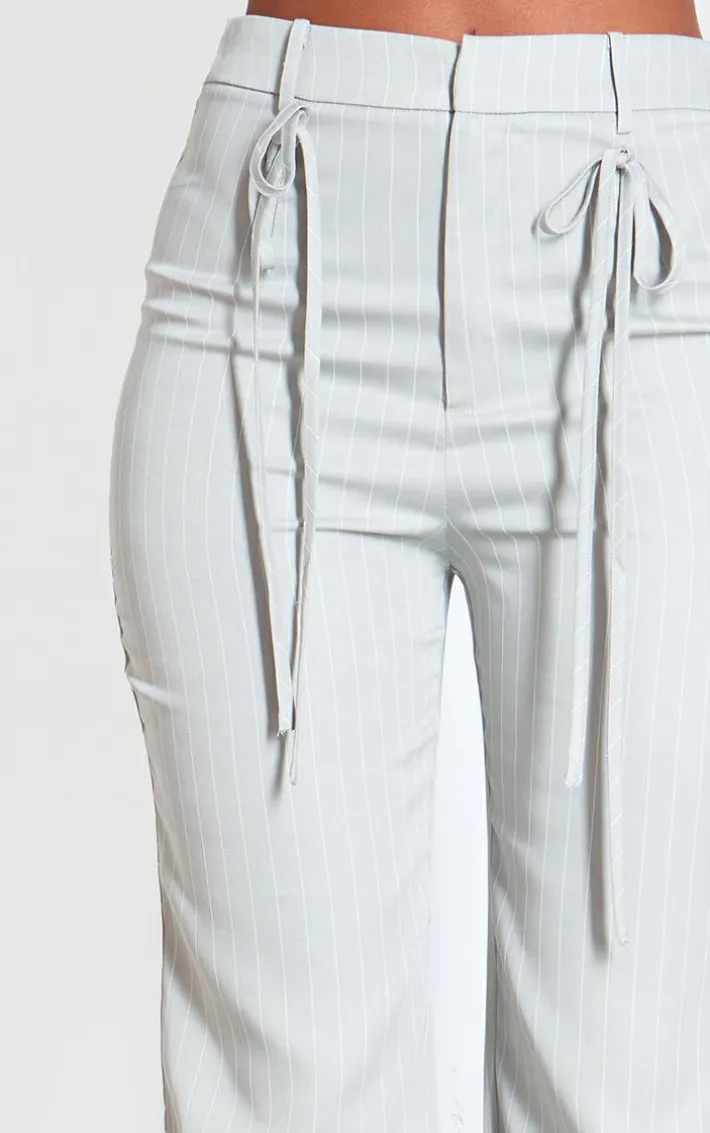Make sure your weekend look stays on point in these tall grey pinstripe tie front detail straight leg pants. Brought to you in a grey hue pinstripe material with a tie front design and a straight leg fit, how can you resist? Style these pinstripe pants with the matching top, heels and gold accessories for a simple yet chic look we’re loving.