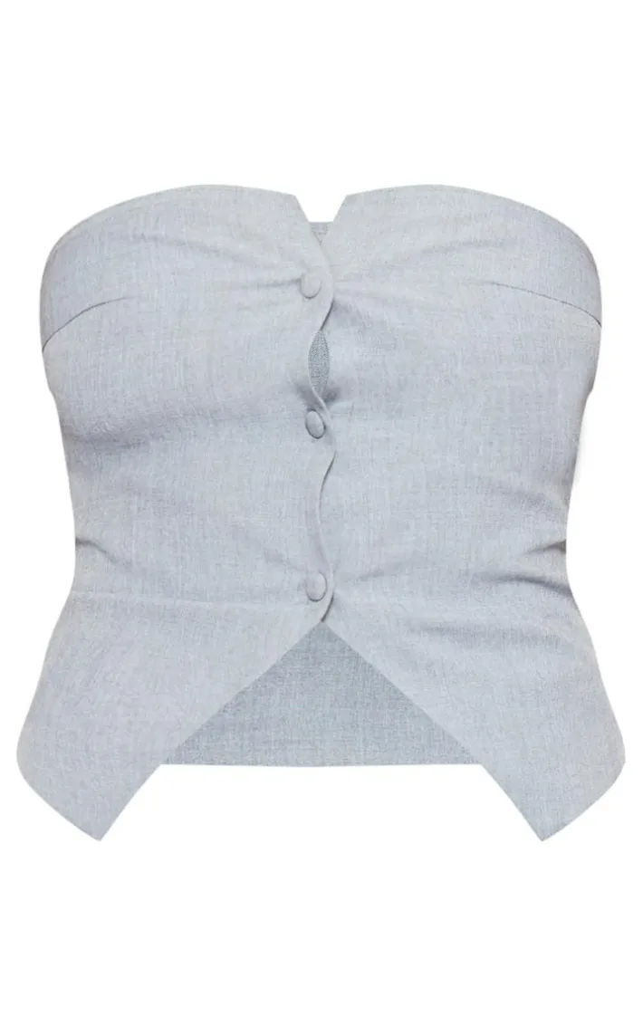 Level up your look with this tall grey woven bandeau button up top. Brought to you in a grey woven material with a bandeau design, what’s not to love? Its bandeau fit and button up detail is all you need to stand out from the rest. Team with the matching wide leg pants and your go-to heels for a look that will earn you all the styling points.