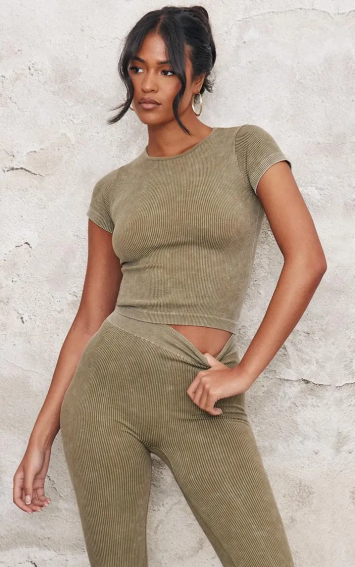 It’s official, we’re in love with this tall khaki faded snatched rib longline shore sleeve t shirt. Brought to you in a khaki faded hue rib material with a contour fit, longline design and short sleeve detail, this t shirt is at the top of our wish list. Style with the matching leggings, fresh kicks and simple accessories for a look we can’t take our eyes off.