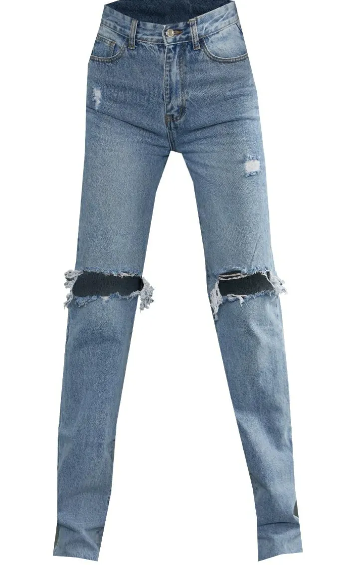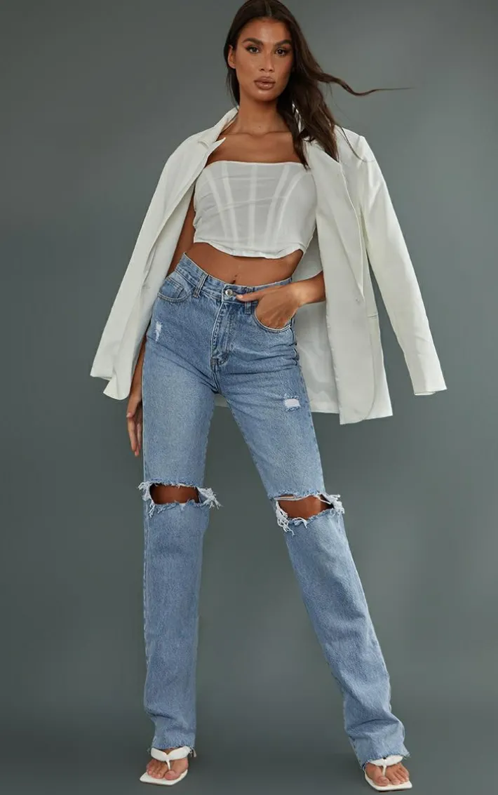 These jeans are perfect for your everyday wardrobe and beyond. Featuring a light wash denim material with distressed detailing, wear these straight-leg jeans with a crop top and heels for a look that we are loving.
