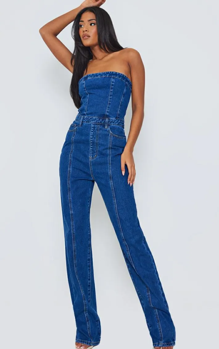 We are obsessed with this tall mid-blue wash bandeau straight-leg denim jumpsuit for your weekend look. Its mid-blue wash denim material brings all the chic vibes to your look and the bandeau neckline will give your weekend look a fresh touch. This jumpsuit is a must-have for whatever your plans are this weekend and is sure to gain you some compliments. Keep this look super simple with clear heels and minimal accessories, what’s not to love?