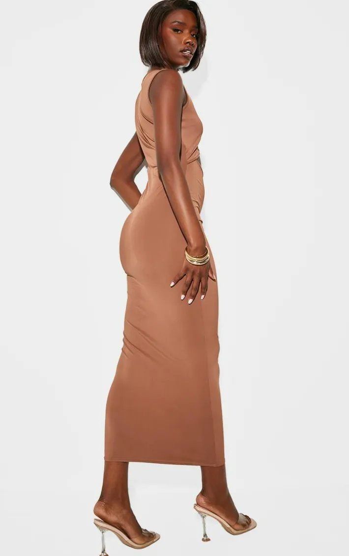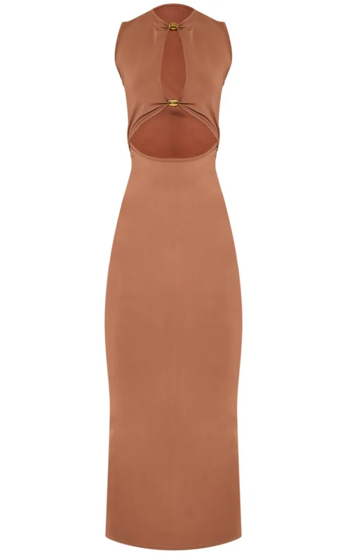 Look all kinds of glam in this tall mocha slinky cut out trim detail midaxi dress. Brought to you in the ultimate seasonal mocha hue, a figure-flattering slinky fabric and fierce cut out feature, it’s giving those weekend worthy vibes. Complete the look with a pair of clear toe heels and matchy gold jewelry.