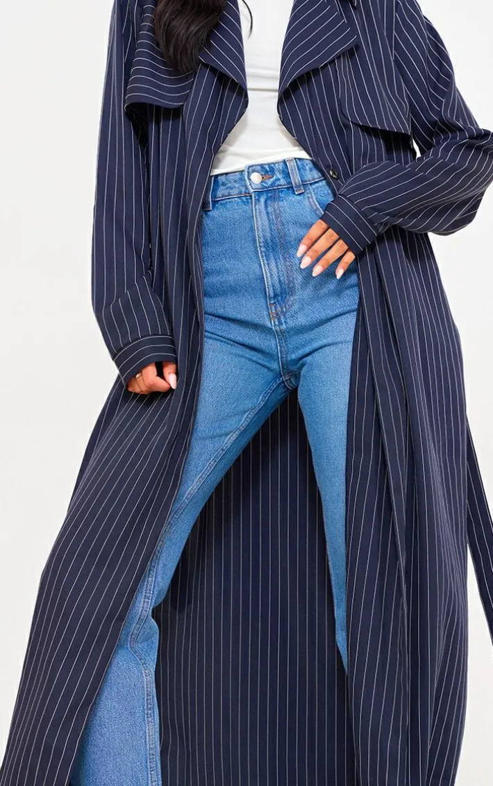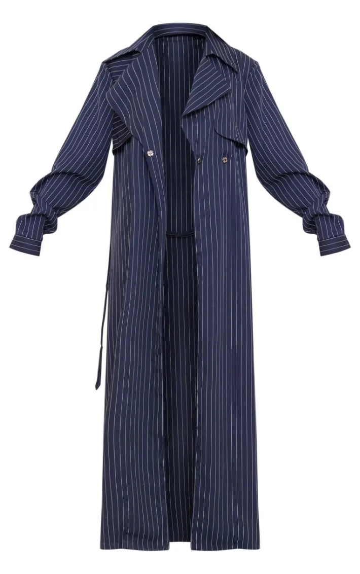When your outfit of the day is in need of an extra touch of chic, look no further than this tall navy pinstripe tie belt maxi trench coat. Brought to you in a navy hue pinstripe material with a tie belt design and a maxi length, what more could you want? Layer this trench coat over a white tee and your fave pair of jeans for an effortless everyday look we’re loving.