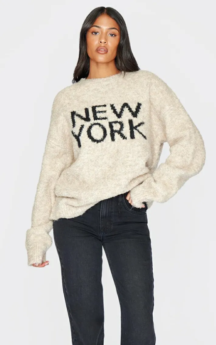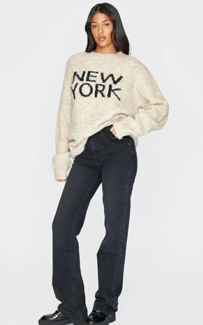 Make styling easy this season with this tall oatmeal new york boucle knit oversized sweater. Made from an oatmeal hue boucle knit material with a ‘New York’ detail and oversized fit, this sweater is all the new you need. Team with wide leg pants, fresh kicks and simple accessories.
