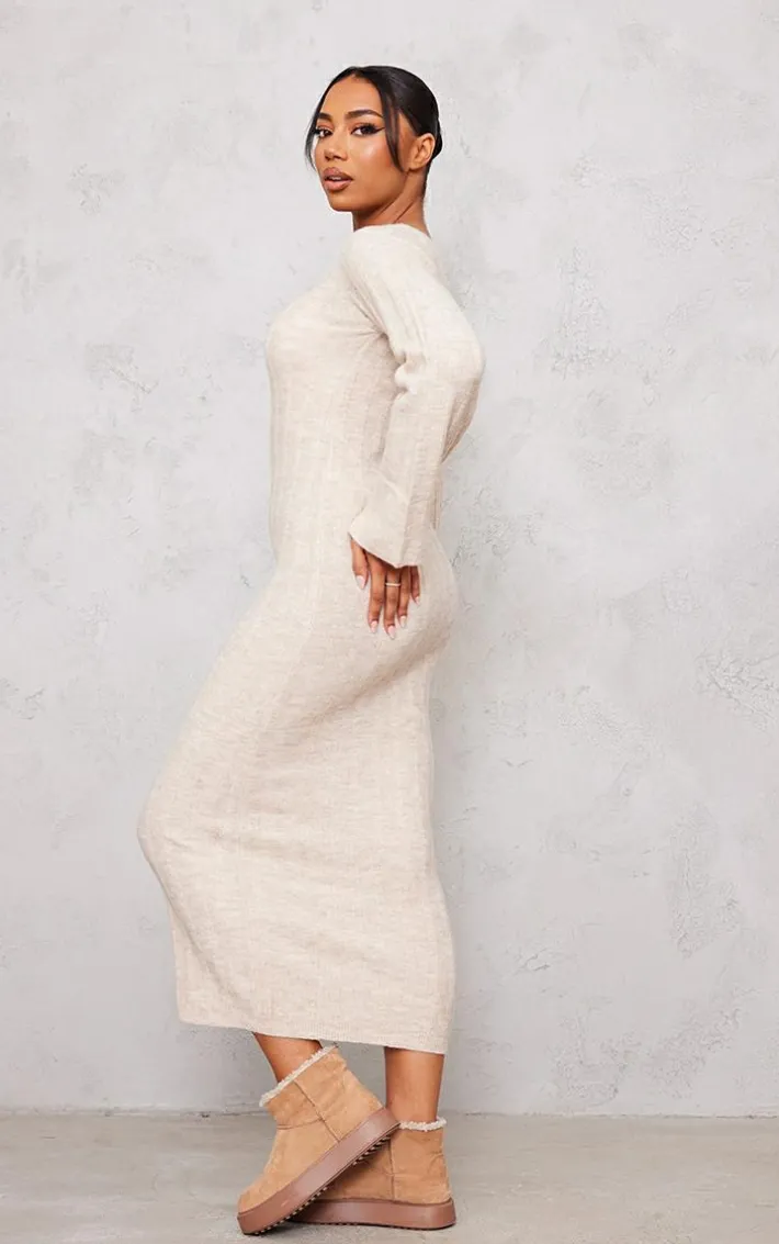 Take the stress out of weekend styling with this tall oatmeal rib knitted v neck midaxi dress. Brought to you in an oatmeal knitted material with a rib design and a v neck fit, you really can’t go wrong with this midaxi dress. Style with some comfy boots and gold accessories for a look that will have eyes on you for all the right reasons.