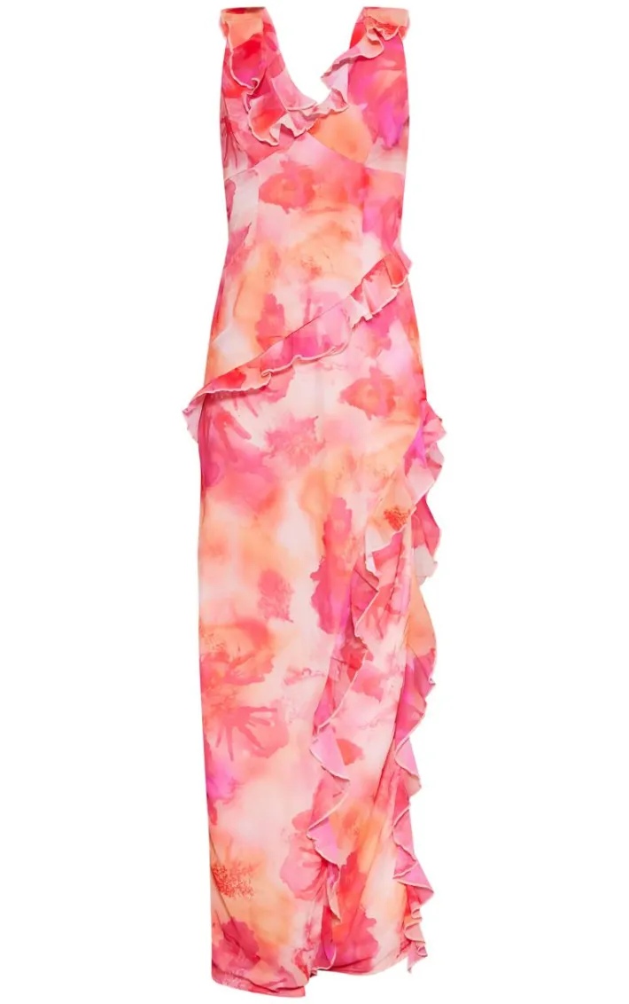 Get ready for your next special occasion with this tall pink floral asymmetric frill split maxi dress, you’re sure to be earning all the compliments. This tall dress features a pink material with a floral print and asymmetric frill detailing, your ‘what to wear’ dilemmas are finally solved. Style this floral dress with gold slip-on heels and a mini bag for a flawless finish.