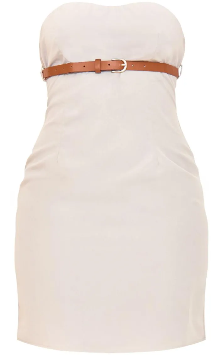 Take the stress out of weekend styling with this tall stone bandeau belt detail mini dress. Brought to you in a stone hue material with a bandeau neckline, belt detailing and a flattering mini fit, what’s not to love? Style this mini dress with heels and statement gold accessories for a look that is sure to make heads turn wherever you go.