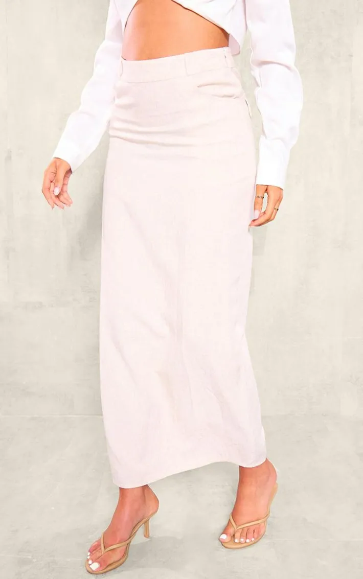 Take on your weekend the right way with this statement tall stone pocket detail split linen midaxi skirt. Made from a stone linen material with a pocket detail and a split design, this is everything were loving and more. With its figure-hugging fit, this midaxi skirt is sure to hug you in all the right places. To complete the look style this seamlessly with a crop top and a pair of clear heels for a look that will secure you all the likes.
