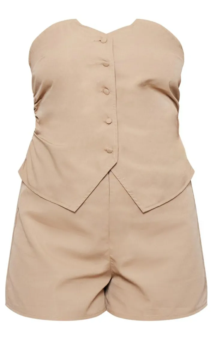 We’re all about neutral hues this season and this tall taupe tailored button up bandeau romper is here to solve all your styling dilemmas. With a taupe material material a button-up design and a bandeau style, you won’t be able to resist this romper. Team this with high heels and accessories for an effortlessly chic look everyone will be asking about.