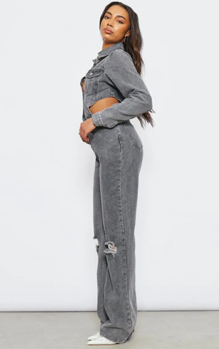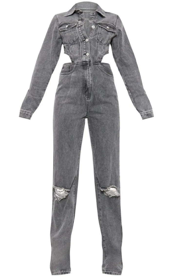 Say hello to your new season staple with this tall washed charcoal denim cut out jumpsuit. Brought to you in a washed charcoal denim material with a cut-out design and distressed detailing, what more could you want? This jumpsuit is here to banish any of your what to wear dilemmas. Style with high heels and accessories for a look that will have you being the topic of everyone’s conversation.