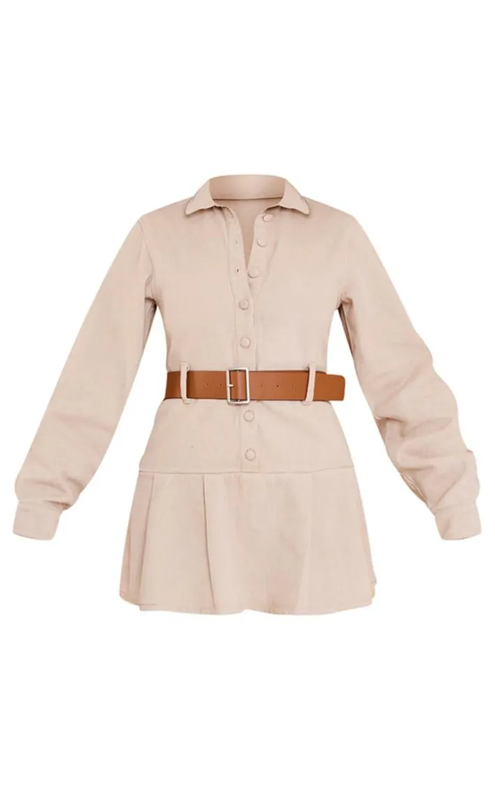 Be ready to set trends in this dress. Featuring a tan denim material with a belted design and a mini length, we can’t get enough. Style with chunky boots, a fedora hat and clutch bag for a stylish combo.