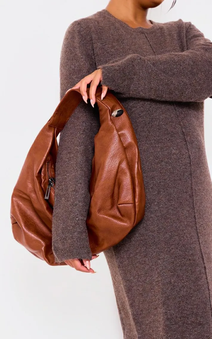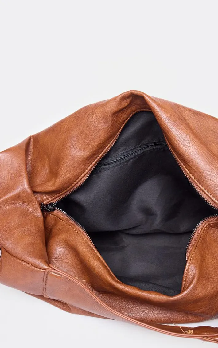 Keep your style game strong with this tan distressed PU super slouchy tote bag. Brought to you in a tan color, distressed PU material and super slouchy tote shape, what more could you want? Style with a neutral fit for an unreal finish.