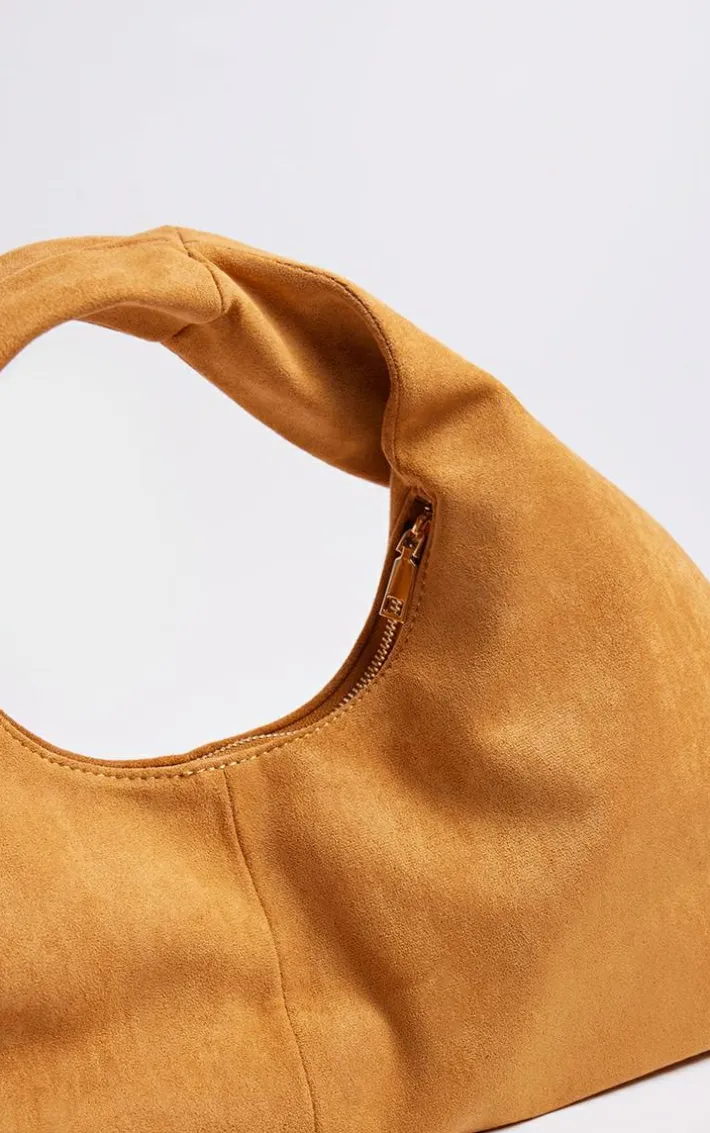 Every needs this tan faux suede slouchy twist handle handbag. Brought to you in a tan hue faux suede material with a slouchy design and twist handle detail, this handbag is at the top of our wish list. ‘Add to bag’ has never looked so good. Style with your fave outfit of the day for a chic finish.