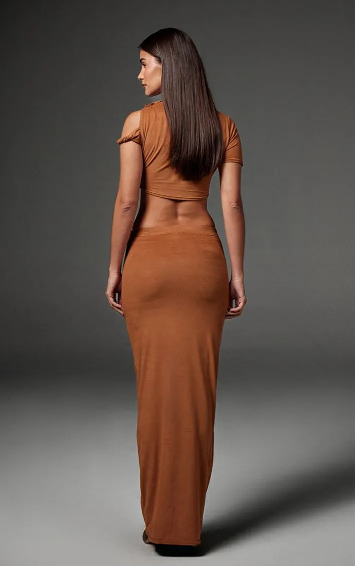 Turn heads for all the right reasons with this taupe faux suede twist strap detail crop top. Brought to you in a taupe faux suede material with a braided strap detail and a cropped length, what’s not to love? This crop top is perfect for those day to night looks. Team with the matching skirt and heels to elevate the look even further.