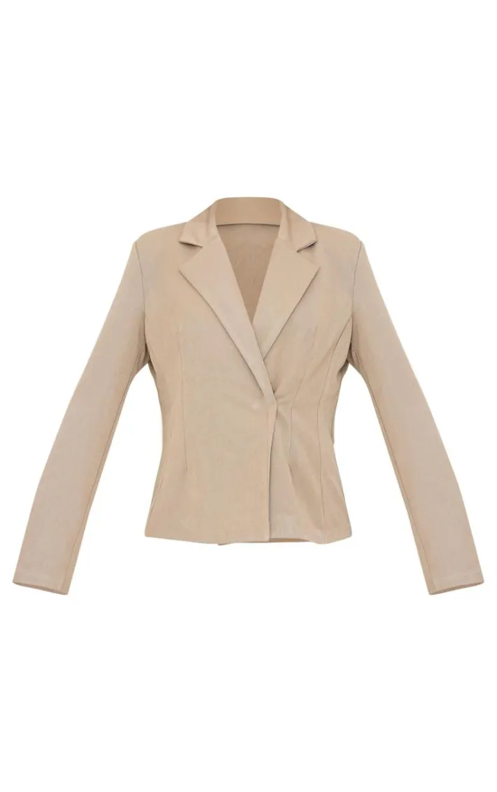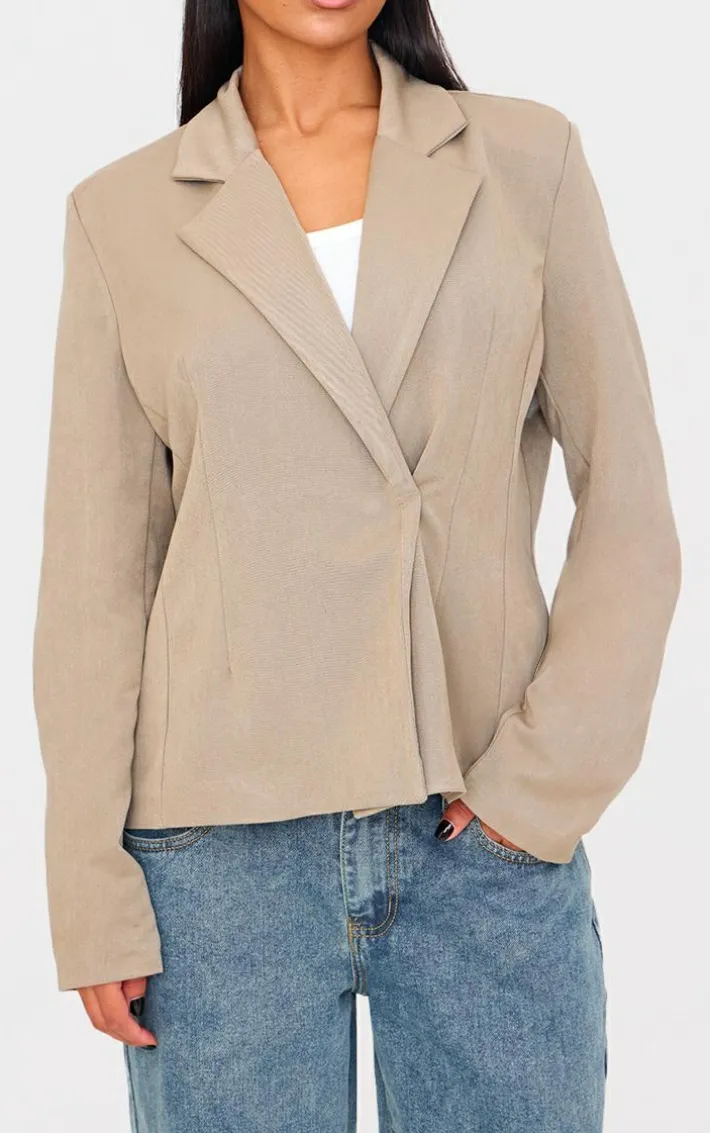 Keep it chic in this taupe fitted symmetric jean grazer blazer. Brought to you in a taupe material with a fitted asymmetric design jean grazer design, you are sure to be setting trends no matter what the occasion. Team with a pair of jeans and your go-to chunky loafers for a look that will have everyone obsessed.
