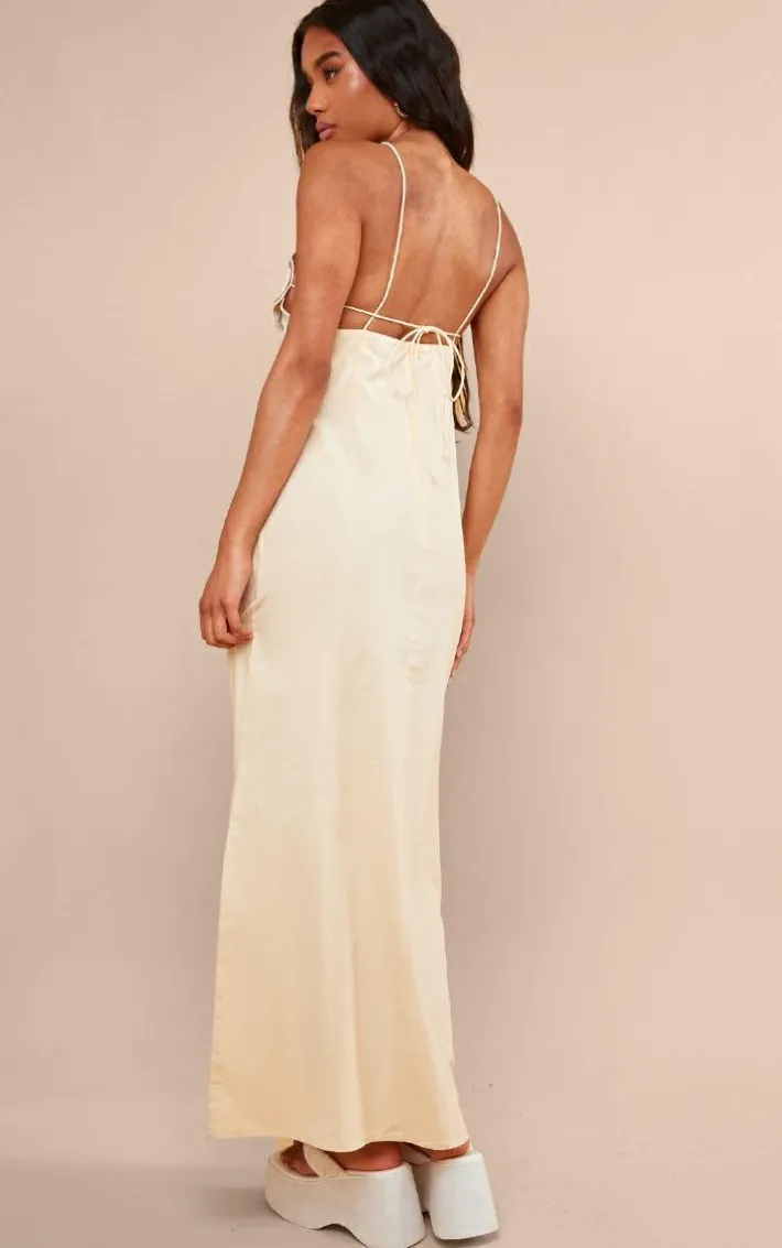 You are guaranteed to make heads turn in this taupe linen look floral applique maxi dress. Brought to you in a taupe hue linen look material with a floral applique design and a flattering maxi fit, how can you not fall in love? Style this linen look dress with flatform sandals and a clutch bag for an effortlessly chic look we’re loving.