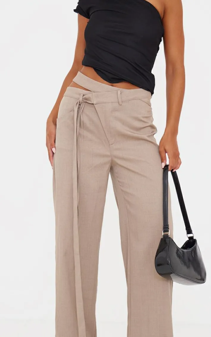 Your collection is calling out for an update, and we have got you covered with these taupe premium crossover waistband detail tailored pants. Brought to you in a taupe premium material with a crossover waistband detail, we can’t get enough. These tailored pants will turn heads no matter what the occasion. Pair with a cropped tee and some of your fave accessories for a look we are loving.