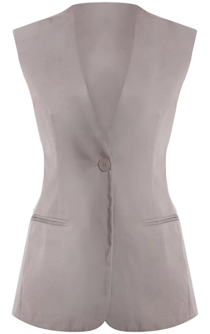 Look all kinds of chic in this taupe premium tailored woven longline vest. Brought to you in a taupe hue woven material with a tailored fit, a longline design and a button fastening, how can you resist? Style this taupe vest with the matching shorts, heeled boots and gold accessories for a look that is sure to steal all the stares.